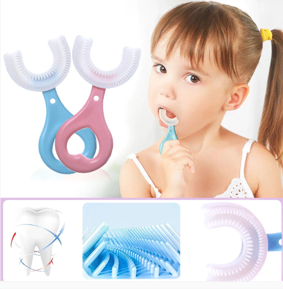 Pour que les enfants aient envie de se brosser les dents, offrez-leur la brosse à dents adaptée ! La brosse à dents en forme de U pour enfant est compatible avec les petites bouches des tout-petits.